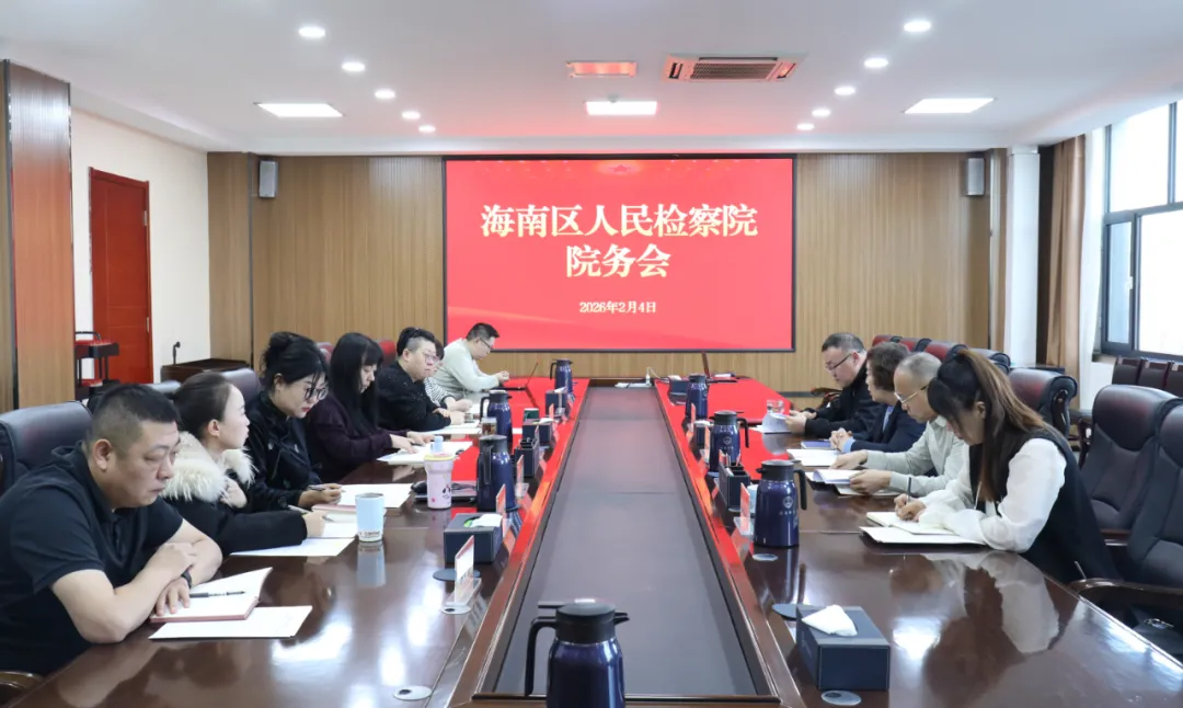 为全面贯彻全国、全区检察长会议精神,海南区人民检察院于2026年2月4日组织召开院务会,全面总结回顾2025年检察工作成效,深入查摆存在的问题与不足,科学谋划2026年工作思路,持续推进检察工作高质量发展。