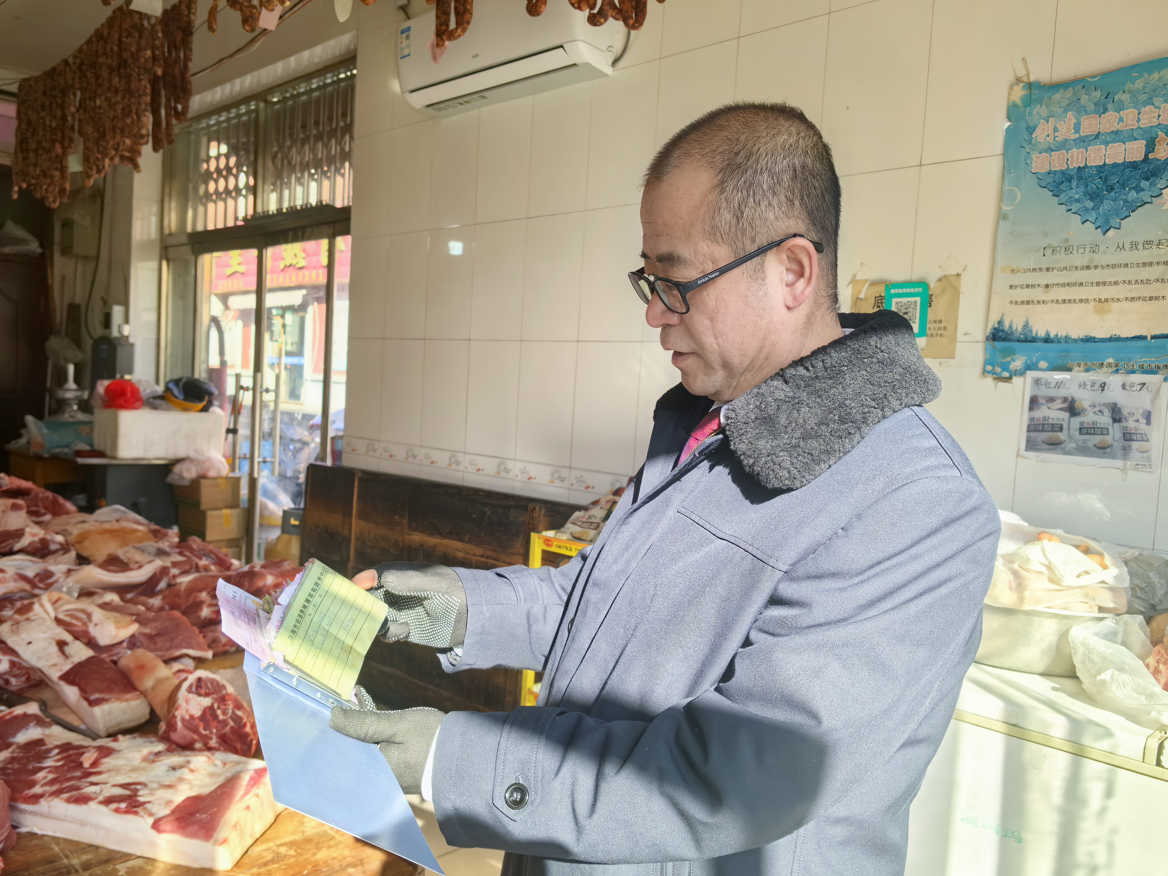 检查聚焦食品经营全链条,重点查看生鲜肉类、乳制品、粮油、预包装食品等民生品类,逐一核查进货查验、索证索票、台账登记、保质期管理、冷链温控等制度落实情况,严查过期变质、标签不规范、来源不明等问题,督促经营主体严把采购、储存、销售关口。同时对从业人员健康证明、食品加工分区、餐具清洗消毒等环节开展细致排查,对辖区阿尔巴斯羊肉开展专项检查,严查检疫溯源、标识规范,守护地理标志产品品质,保障群众舌尖安全。
