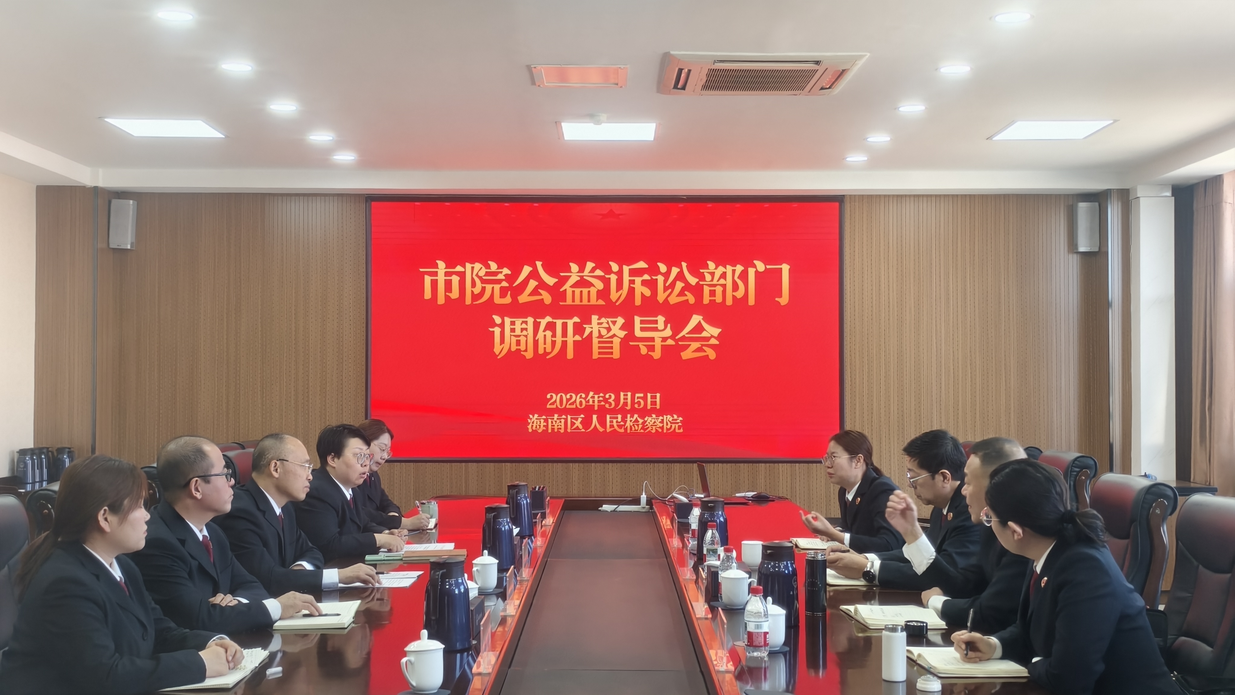 近日,市检察院公益诉讼部门莅临海南区人民检察院调研督导公益诉讼工作。督导组充分肯定我院工作成效,提出明确期许与具体要求,勉励我院在2026年锚定更高目标、再创佳绩。